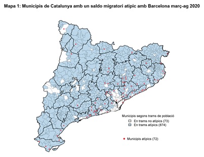 En concret, per analitzar el comportament migratori d’aquests darrers mesos s’han agrupat els municipis de Catalunya en quatre grans trams segons població i províncies i on es detecten marcades anormalitats i el trencament del patró migratori és en els municipis de menys de 5.000 habitants de les quatre províncies de Catalunya.