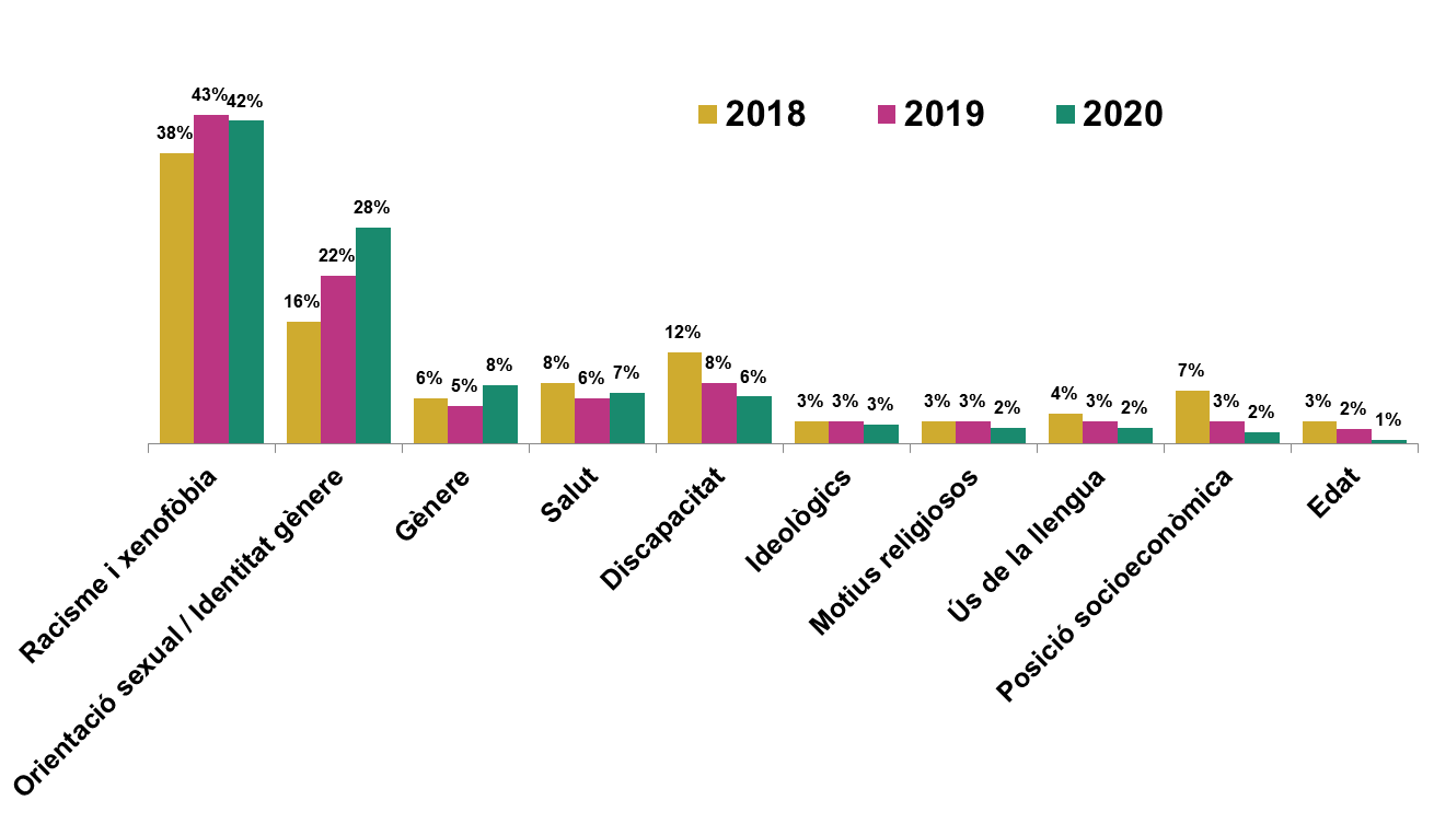 El racisme i la xenofòbia, amb el 42%, i la LGTBIfòbia, amb el 28%, són les principals causes dels expedients per discriminació oberts per l’Oficina durant l’any passat
