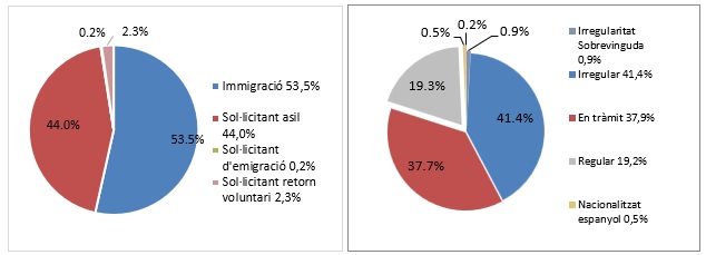 El 80% de les persones ateses es trobava en situació administrativa irregular i el 44% eren sol·licitants de protecció internacional