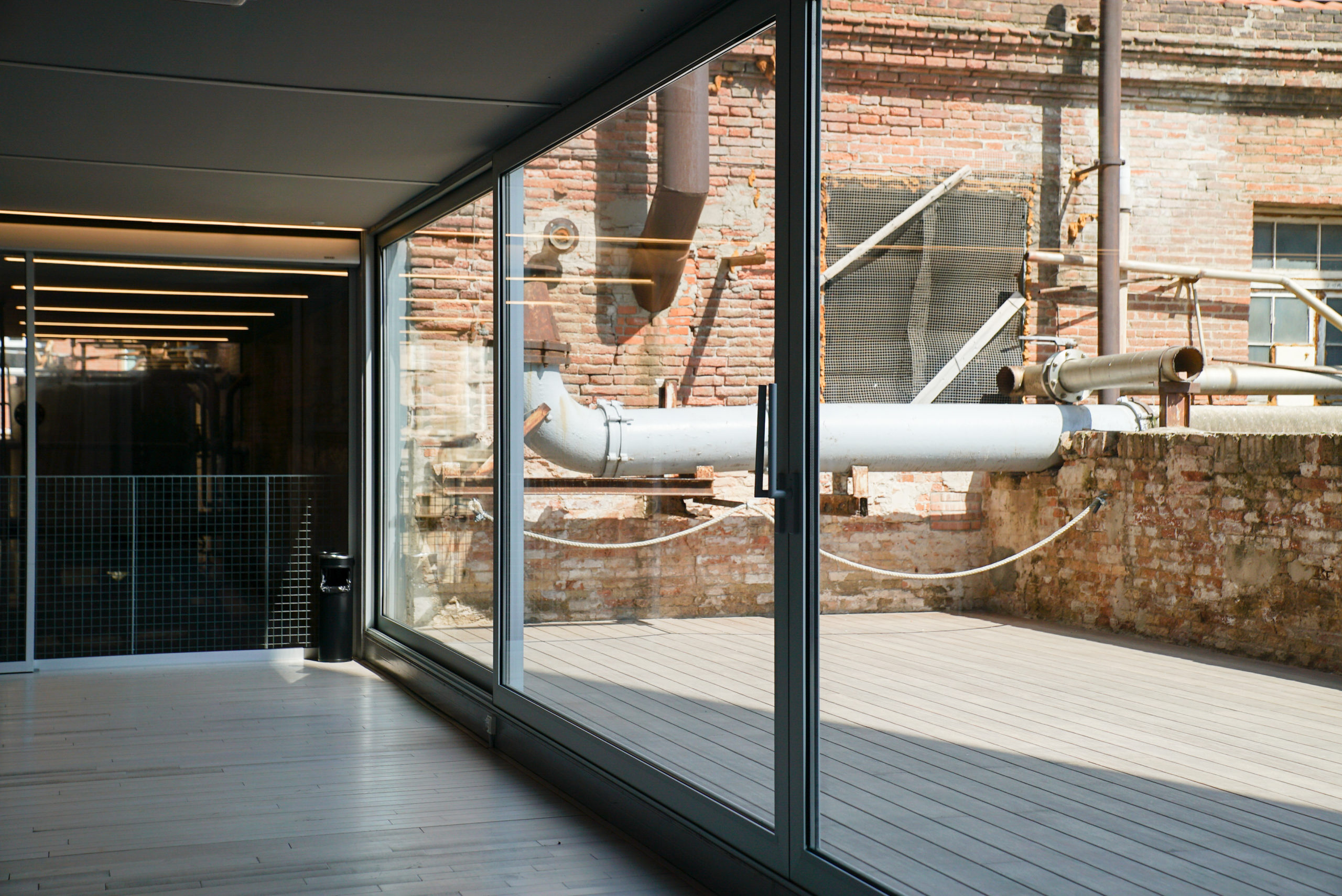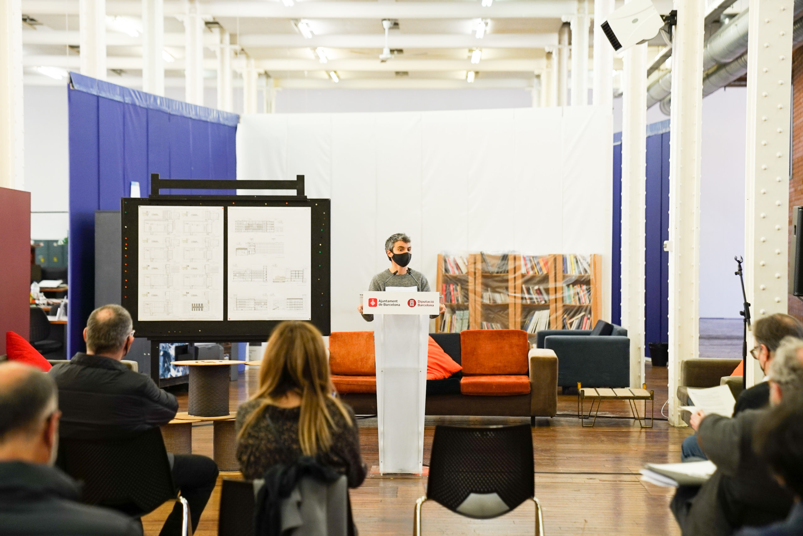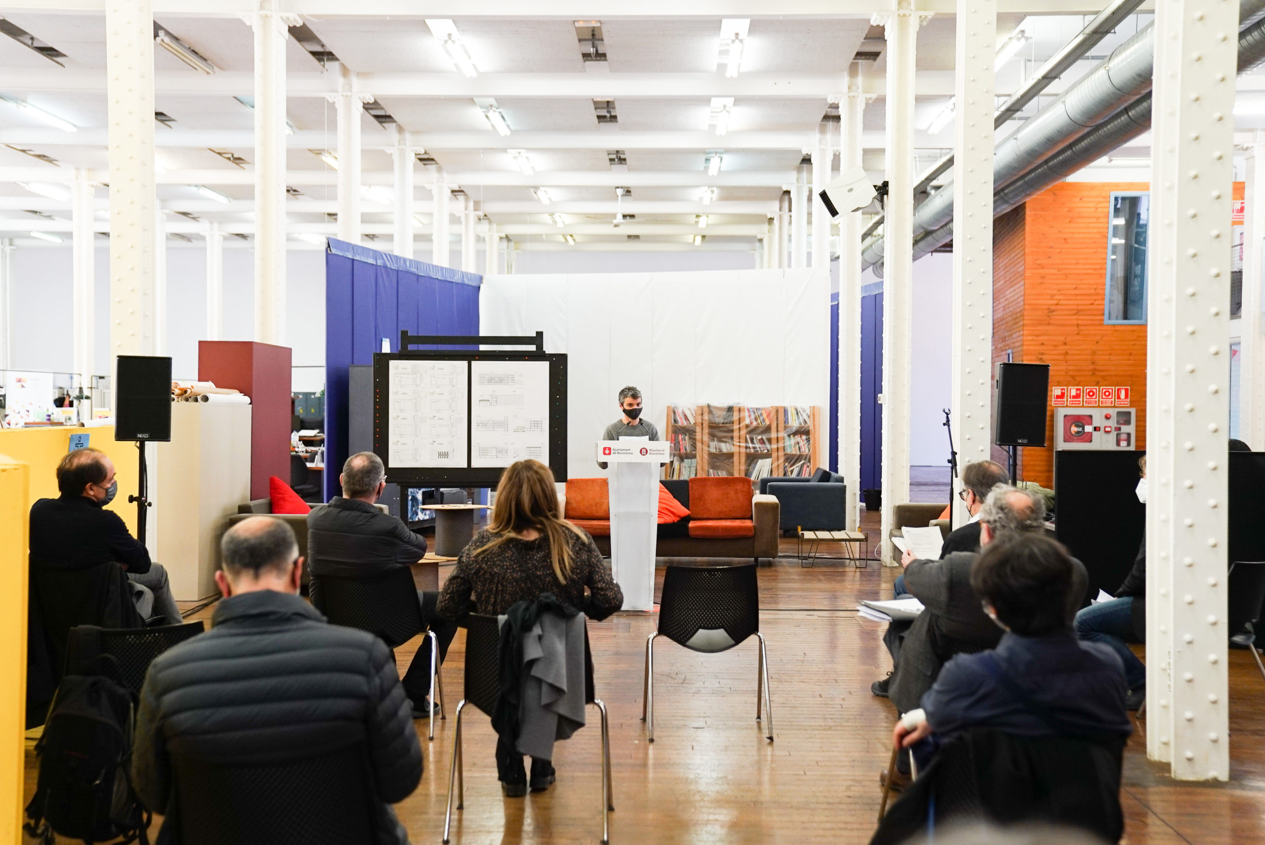 La intervenció persegueix la conservació dels grans espais diàfans de la Nau Central, mitjançant la introducció de volums en forma de caixa que ajudaran a distribuir i definir els espais i a incorporar els serveis necessaris, permetent preservar la visió del volum en el seu conjunt.
