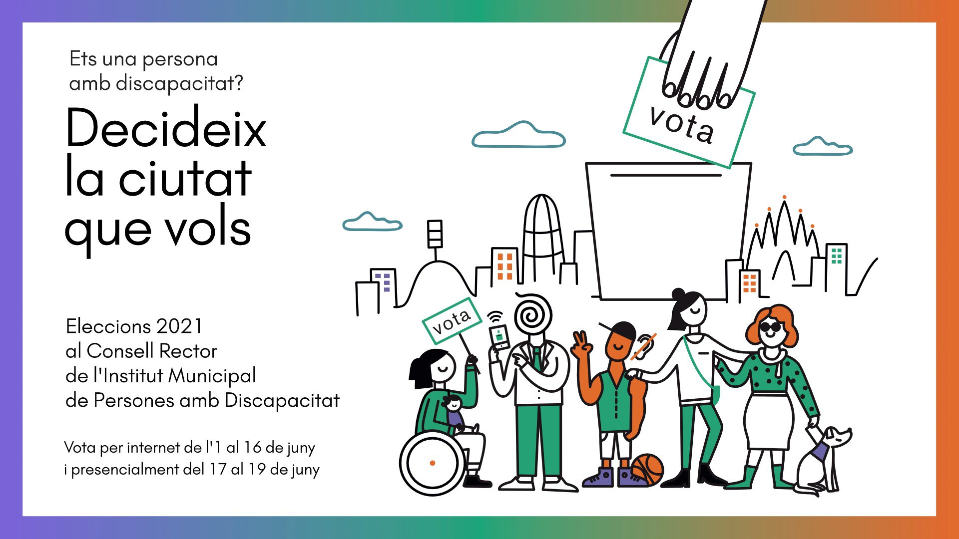 L’Institut Municipal de Persones amb Discapacitat treballa perquè Barcelona sigui una ciutat accessible i inclusiva. Per fer-ho, compta amb les persones amb discapacitat i les entitats que les representen dins dels seus òrgans de govern. El Consell Rector aprova el pla general i el programa d’actuació de l’IMPD. A més, és un canal a través del qual les persones amb discapacitat poden incidir en la presa de decisions polítiques, mitjançant els i les seves representants. És per això que aquestes eleccions són una cita única de democràcia participativa a l’Ajuntament de Barcelona.