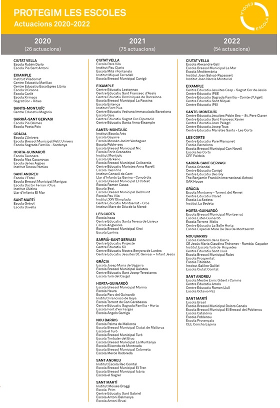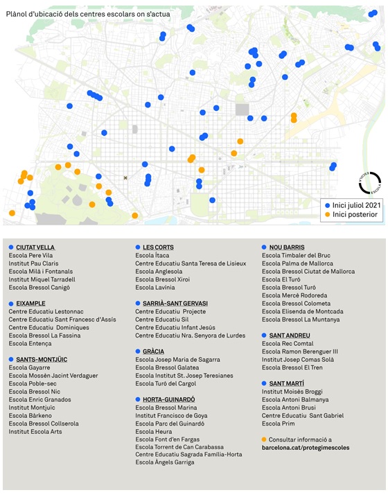 Al web www.barcelona.cat/protegimescoles es pot consultar tota la informació actualitzada de les intervencions i el mapa amb les escoles.