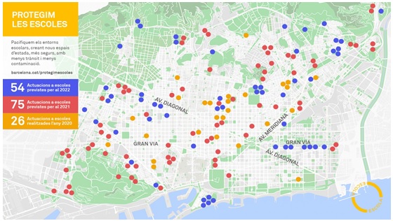 A més, enguany es farà una avaluació de les intervencions amb la col·laboració d’IS Global. S’examinarà en 9 escoles pilot quin efecte tenen les actuacions sobre la salut i el benestar –soroll i NO2– i els canvis en la qualitat i l’ús de l’espai públic. I l’Agència de Salut Pública analitzarà com impacta la transformació dels entorns escolars de les actuacions del 2021 a nivell de la interacció social i el joc espontani dels infants.