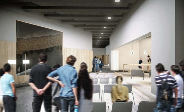 És un espai que es planteja com la continuïtat de l’espai arqueològic i en aquest sentit manté gran part de les seves característiques com l’alçada de sostre, les safates d’instal•lacions al sostre, etc. L’accés es durà a terme pel nucli existent a la capçalera del Mercat de la cantonada Borrell-Manso, o bé des dels patis d’Urgell i Manso i posteriorment accedint al local veïnal des de l’espai fossat de la planta -1.