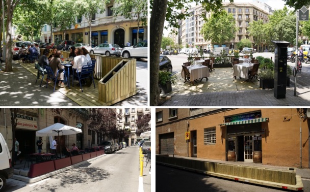 Del total de nous permisos, 1.588 s’han donat en espais com cordons d’aparcament, carrils de circulació i xamfrans. La voluntat és que aquestes puguin passar a ser definitives per donar continuïtat a l’activitat econòmica que generen, que tinguin una estètica de qualitat i un bon encaix amb el paisatge urbà i deixar enrere els elements provisionals –blocs de formigó i pivots grocs– utilitzats inicialment.