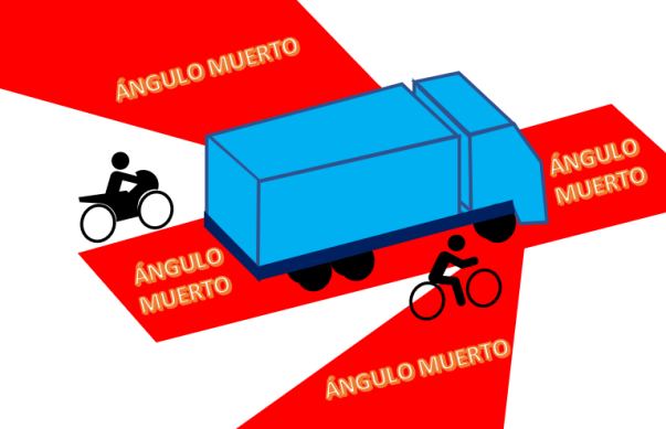 En aquesta imatge es pot observar en quins espais el conductor no té visibilitat: