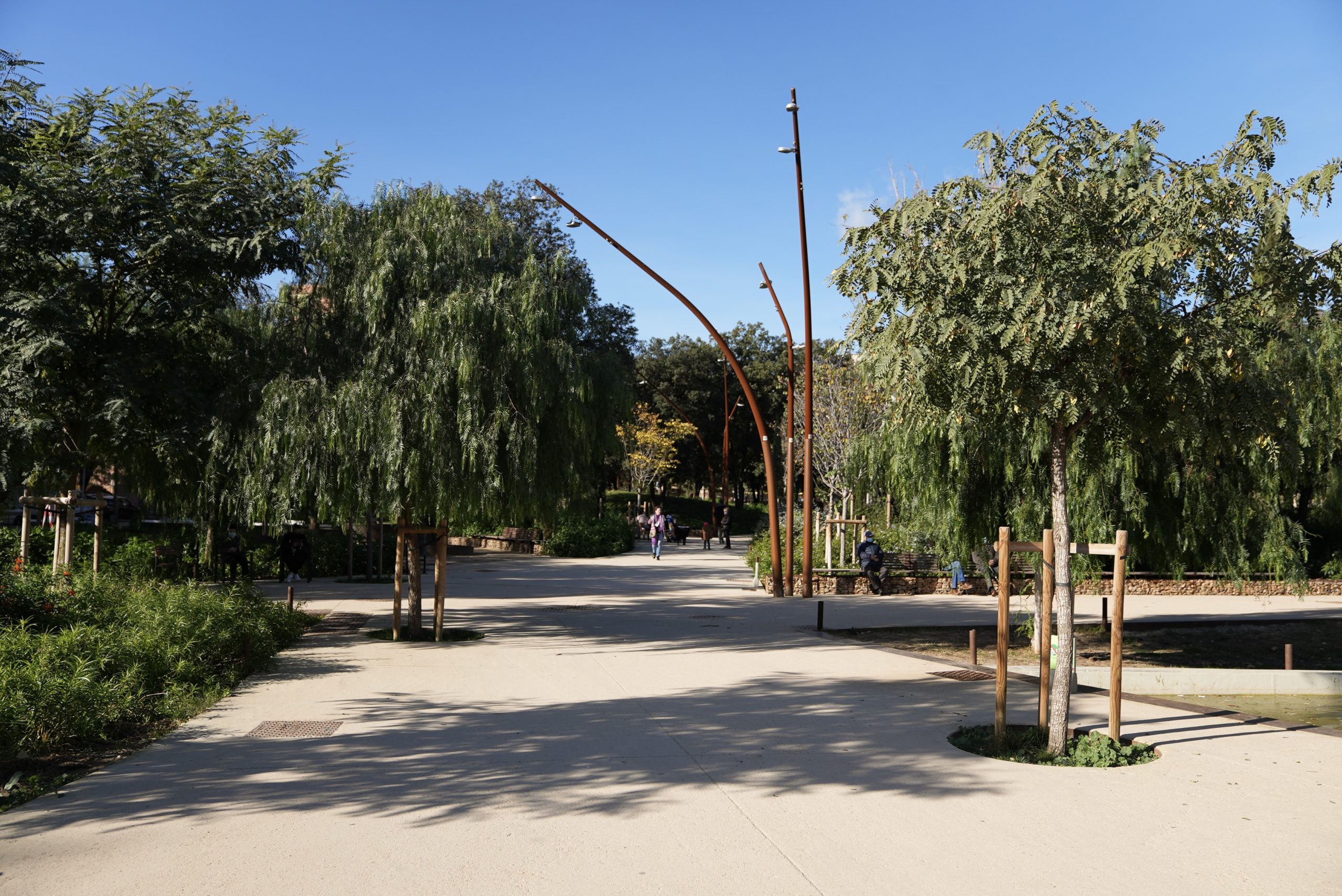Pel que fa a la vegetació, s’han conservat l’arbrat existent a la vegada que s’han augmentat les capes d’arbustos o l’arbrat de fulla caduca amb l’objectiu de generar espais d’ombra a l’estiu i solejats a l’hivern. La presència de vegetació amb floració permet mostrar el pas de les estacions i caracteritza les diferents parts del parc.