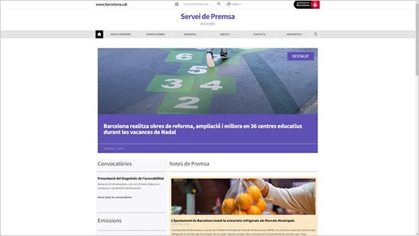 La nova versió del lloc web, disponible a l’adreça https://ajuntament.barcelona.cat/premsa, organitza els continguts en cinc seccions: