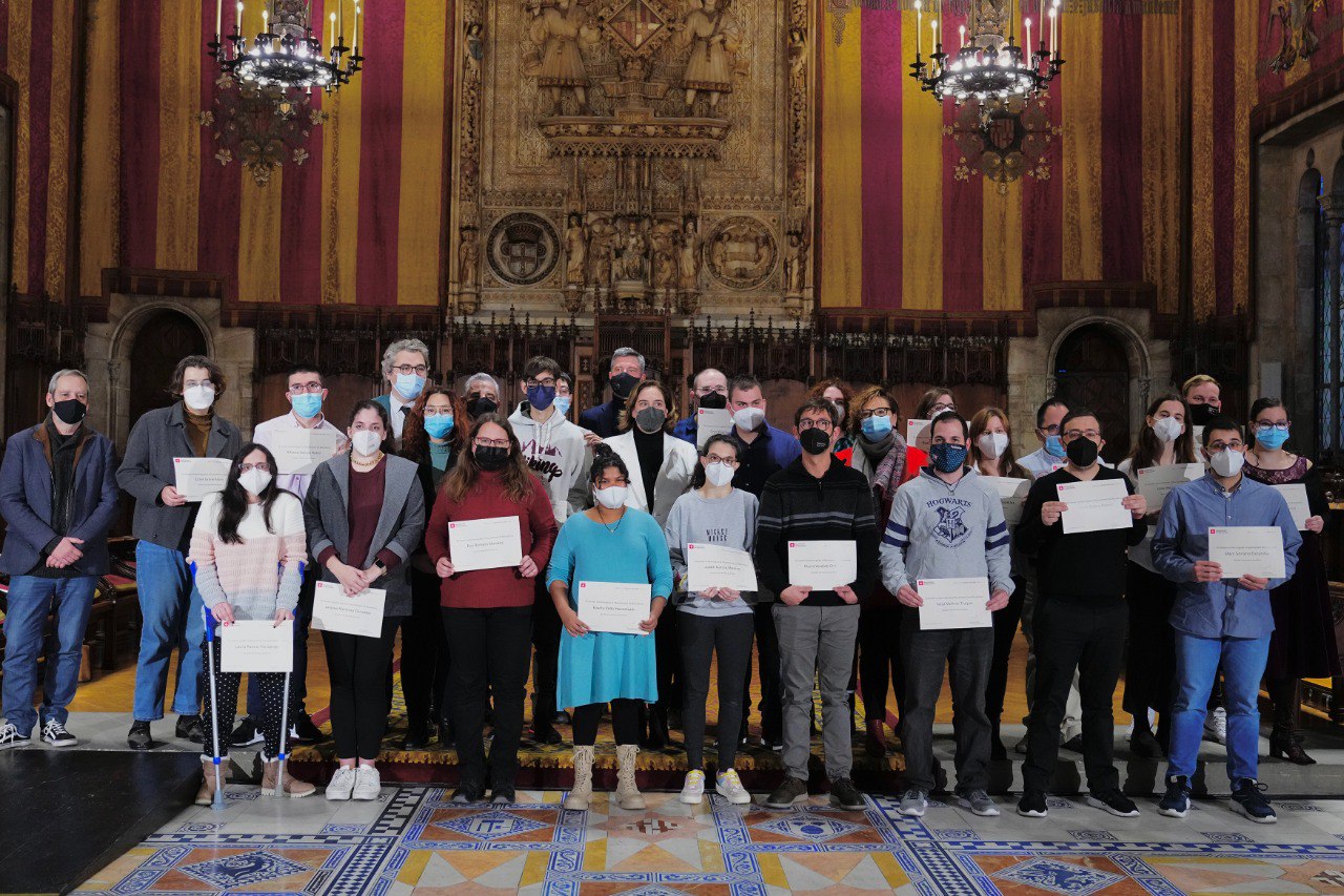 L’Ajuntament de Barcelona ha donat la benvinguda, amb un acte al Saló de Cent, aquest dijous a 27 persones amb dificultats d’integració laboral per raó de la seva capacitat intel·lectual que s’han incorporat al consistori com a ajudants de serveis auxiliars després d’aprovar la primera convocatòria d’oposicions creada per la Gerència de Persones i Desenvolupament Organitzatiu i l’Institut Municipal de Persones amb Discapacitat (IMPD). L’Ajuntament ha llançat, per primera vegada, una convocatòria específica i adaptada que va més enllà dels habituals torns de reserva per a persones amb discapacitat i ha convocat aquestes primeres 27 places per a persones amb discapacitat intel·lectual, per a les quals s’ha creat una nova categoria laboral específica.