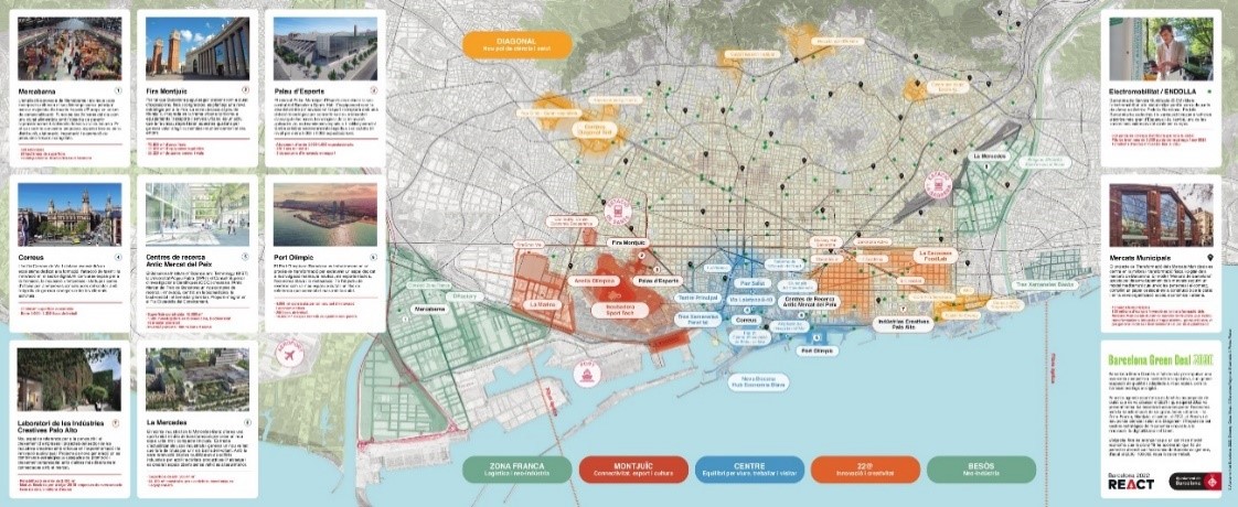 L’Ajuntament de Barcelona ha presentat el mapa del futur econòmic de la ciutat amb la incorporació de nous projectes de la Barcelona Green Deal 2030 en el marc de la inauguració de la segona edició de la jornades REACT que se celebren avui, demà i demà passat a l’edifici del Disseny Hub. Precisament en aquestes jornades l’alcaldessa de Barcelona, Ada Colau, ha reivindicat que Barcelona “està liderant la recuperació econòmica a tot l’Estat”, generant ocupació i al capdavant de totes les capitals en la reducció de l’atur, sent la ciutat amb major inversió social i també ocupant la primera posició en la construcció d’habitatge assequible.