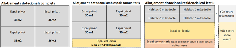 Pel que fa a les tipologies d’allotjaments dotacionals, se’n preveuen tres:
