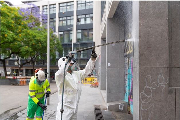 Una de les primeres mesures es l’increment del control i la neteja de les pintades als edificis catalogats amb un increment d’1 milió d’euros per reforçar les brigades patrimonials, el que suposa un augment de prop d’un 50% del pressupost. També s’incorporen més de 800.000 euros al pressupost de la contracta de neteja de pintades que actualment es de 4.555.000 milions d’euros. D’aquesta manera es vol que el servei sigui més flexible i es pugui actuar més ràpid en les zones més problemàtiques. Durant el 2021 es van fer 115.092 intervencions i es van netejar 279.422 metres quadrats de façanes, mentre que en aquest any 2022, ja s’han fet fins al 31 de març 30.345 intervencions i s’han netejat 71.114 metres quadrats.