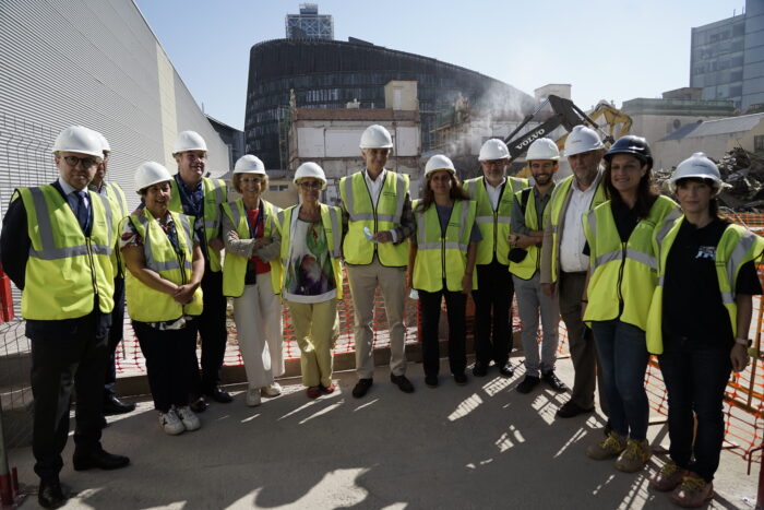 A banda de seguir l’evolució dels enderrocs, també han pogut visitar la nova zona de treball que s’ha posat en marxa a l’hospital, un espai diàfan de 1.500 m2 conceptualitzat com un open space dissenyat per afavorir el coworking, el flux de treball i l’intercanvi d’idees entre els professionals dels diferents serveis que hi portaran a terme la seva activitat.