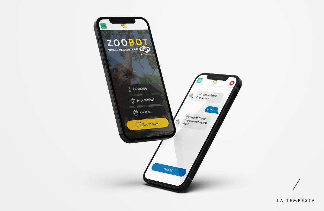 Pel que fa al repte plantejat per fer més inclusives les visites al Zoo de Barcelona, la solució escollida és un assistent virtual que, a través del mòbil, va suggerint-li a la persona usuària continguts relacionats amb la visita. S’ha dissenyat pensant, sobretot, en col·lectius amb necessitats d’accessibilitat visual, auditiva i cognitiva i persones amb trastorns mentals.
