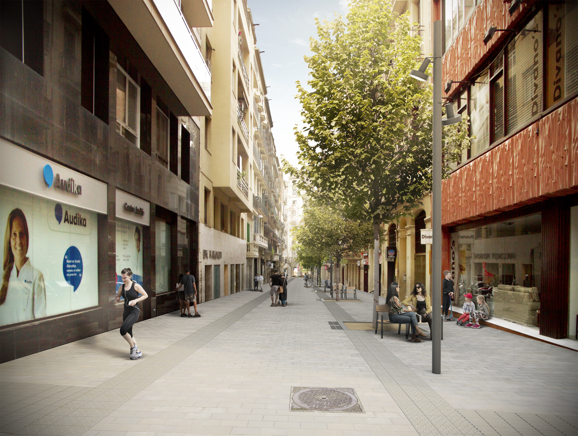 L’Ajuntament reurbanitzarà la via per transformar-la en plataforma única, donar el protagonisme als desplaçaments a peu, al verd i als usos veïnals i millorar l’accessibilitat