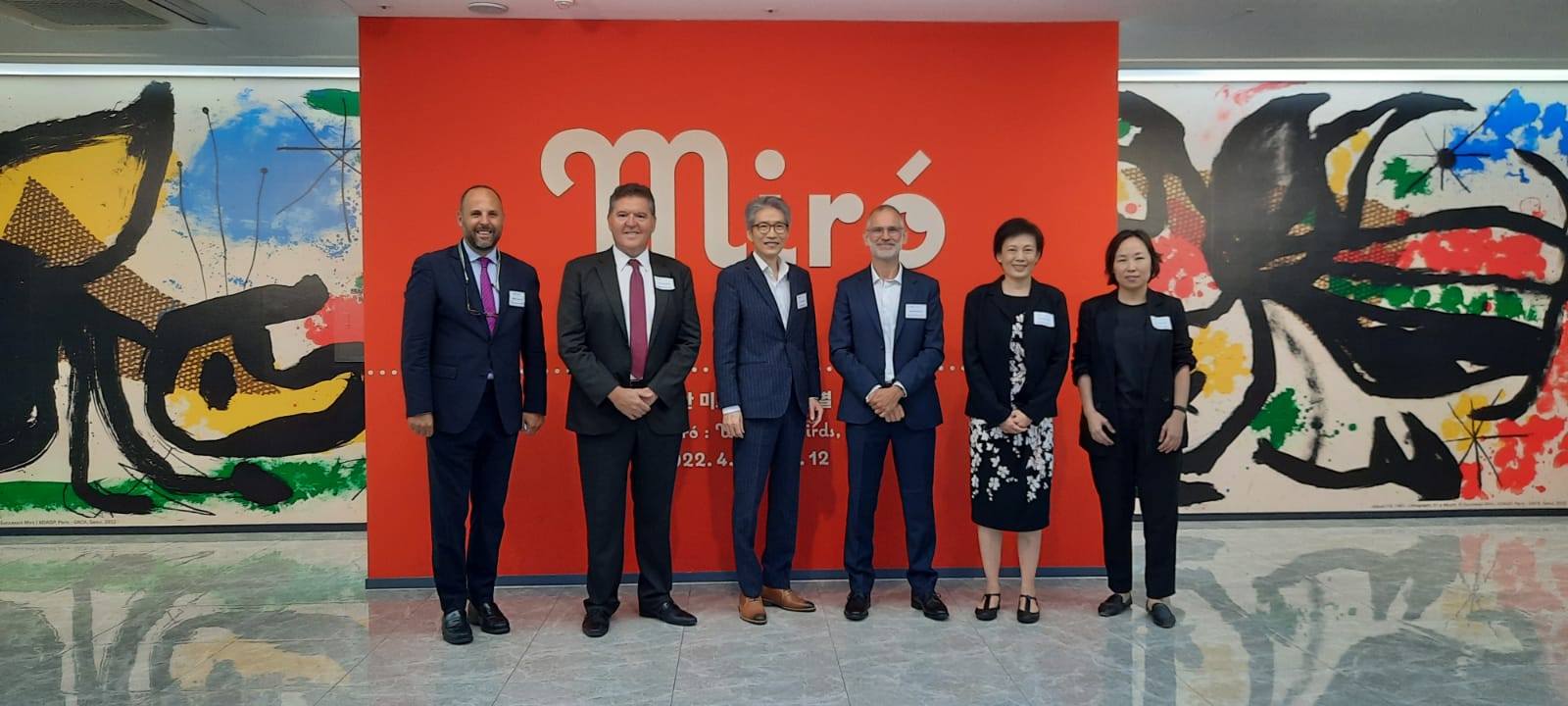 La delegació l’àrea de promoció econòmica, que compta també amb representants de Turisme de Barcelona, ha participat en una trobada amb una seixantena de touroperadors coreans. L’acció ha tingut lloc en el marc de l’exposició “Joan Miró, dones, ocells i estels” que la Fundació Joan Miró ha organitzat al My Art Museum (MAMU) de Seül. L’encontre, pensat per la promoció de Barcelona com a destinació cultural pel visitant coreà, té lloc en un moment d’inici de la recuperació de les connexions intercontinentals aèries directes amb Barcelona interrompudes des de la pandèmia. Precisament, el dia 2 de setembre, la delegació tornarà en el primer vol programat entre Seül i Barcelona de la companyia Korean Airlines que recupera, a partir d’ara, tres freqüències setmanals.