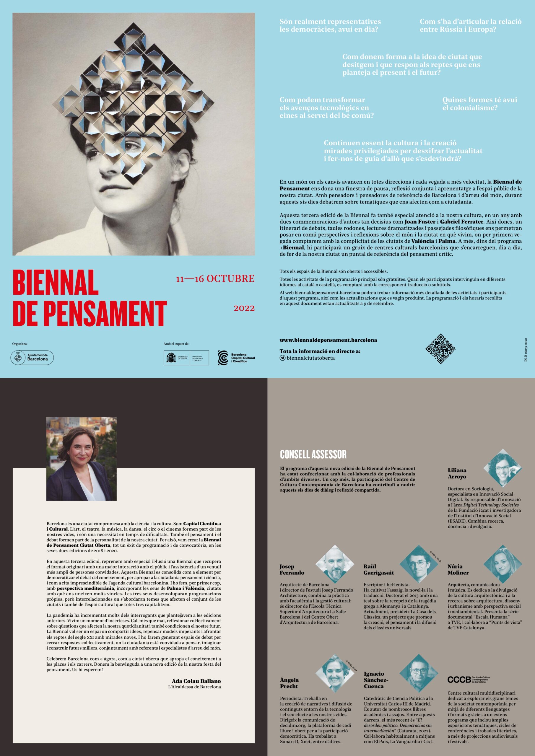 El Consell assessor de la Biennal 2022 el formen el CCCB, Núria Moliner, Josep Ferrando, Liliana Arroyo, Ignacio Sánchez-Cuenca, Raül Garrigasait i Ángela Precht Adam