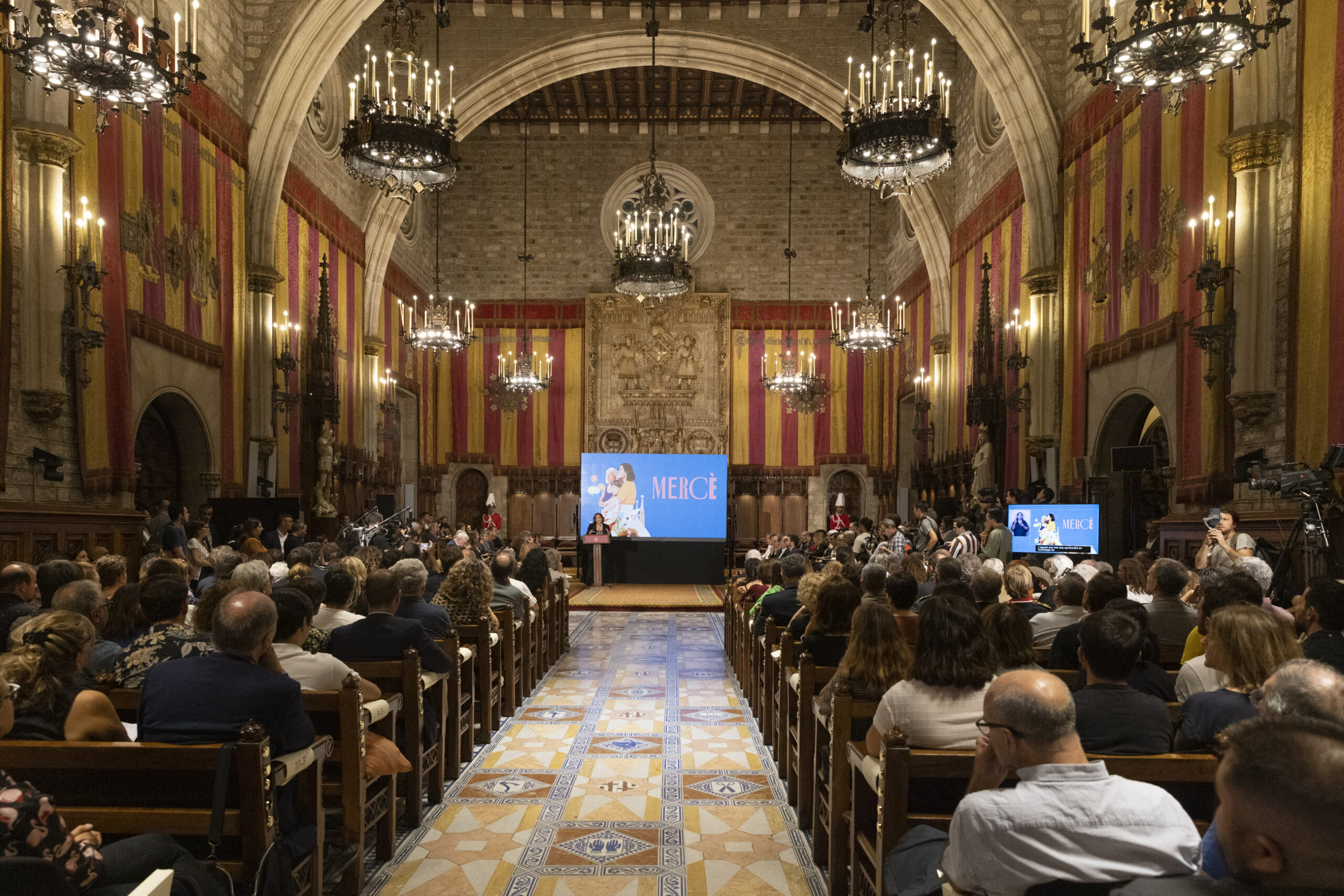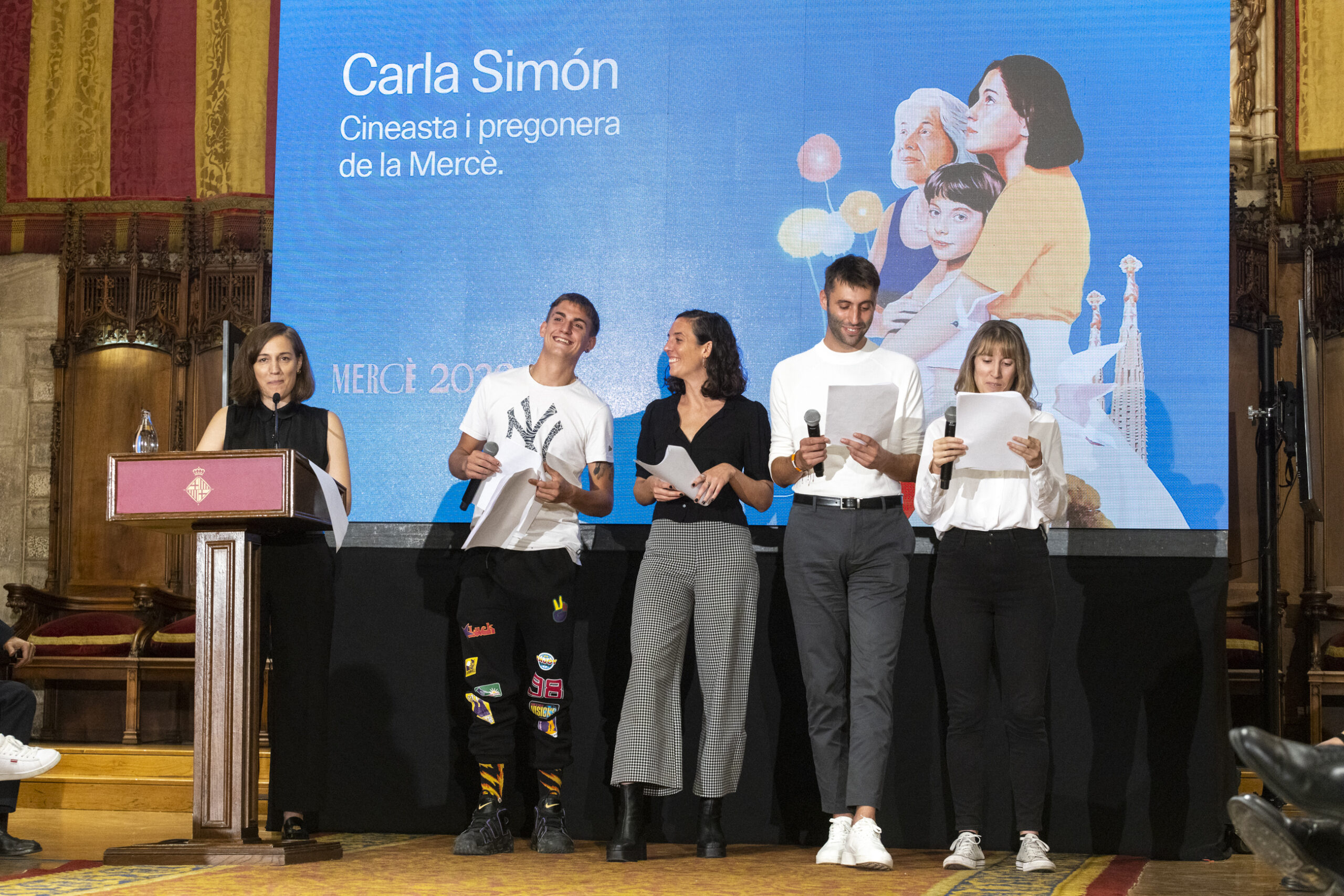 La cineasta Carla Simón dona el tret de sortida a les festes de la Mercè 2022, en un acte presidit per l’alcaldessa de Barcelona, Ada Colau, que s’ha celebrat al Saló de Cent de l’Ajuntament.