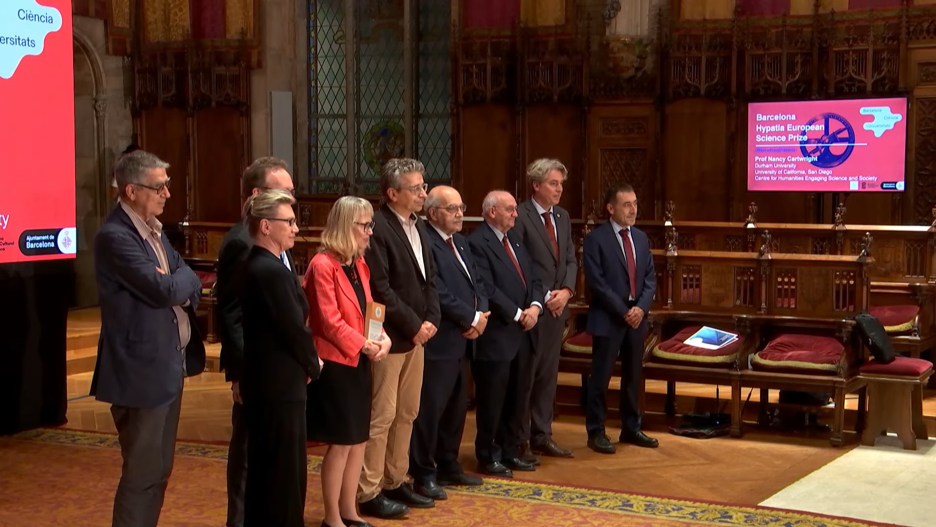 Barcelona ha lliurat avui el Premi Hipàtia a la professora de filosofia a la Universitat de Durham i directora del Centre for Humanities Engaging Science and Society (CHESS) Nancy Cartwright. Amb aquest guardó d’àmbit europeu se li reconeixen les seves destacades contribucions a la recerca filosòfica, a través de les quals s’ha arribat a una nova comprensió de la naturalesa de les teories científiques i de la causalitat. El seu treball ha tingut conseqüències de gran abast per a diferents camps del coneixement, des de les ciències naturals, a les socials i humanes. Les aportacions de Nancy Cartwright han establert les bases d’un enfocament que combina rigor i realisme i que té com a objectiu una política basada en l’evidència. Això ha tingut un gran impacte en la societat i en les polítiques d’arreu tant a dins com a fora del continent europeu.