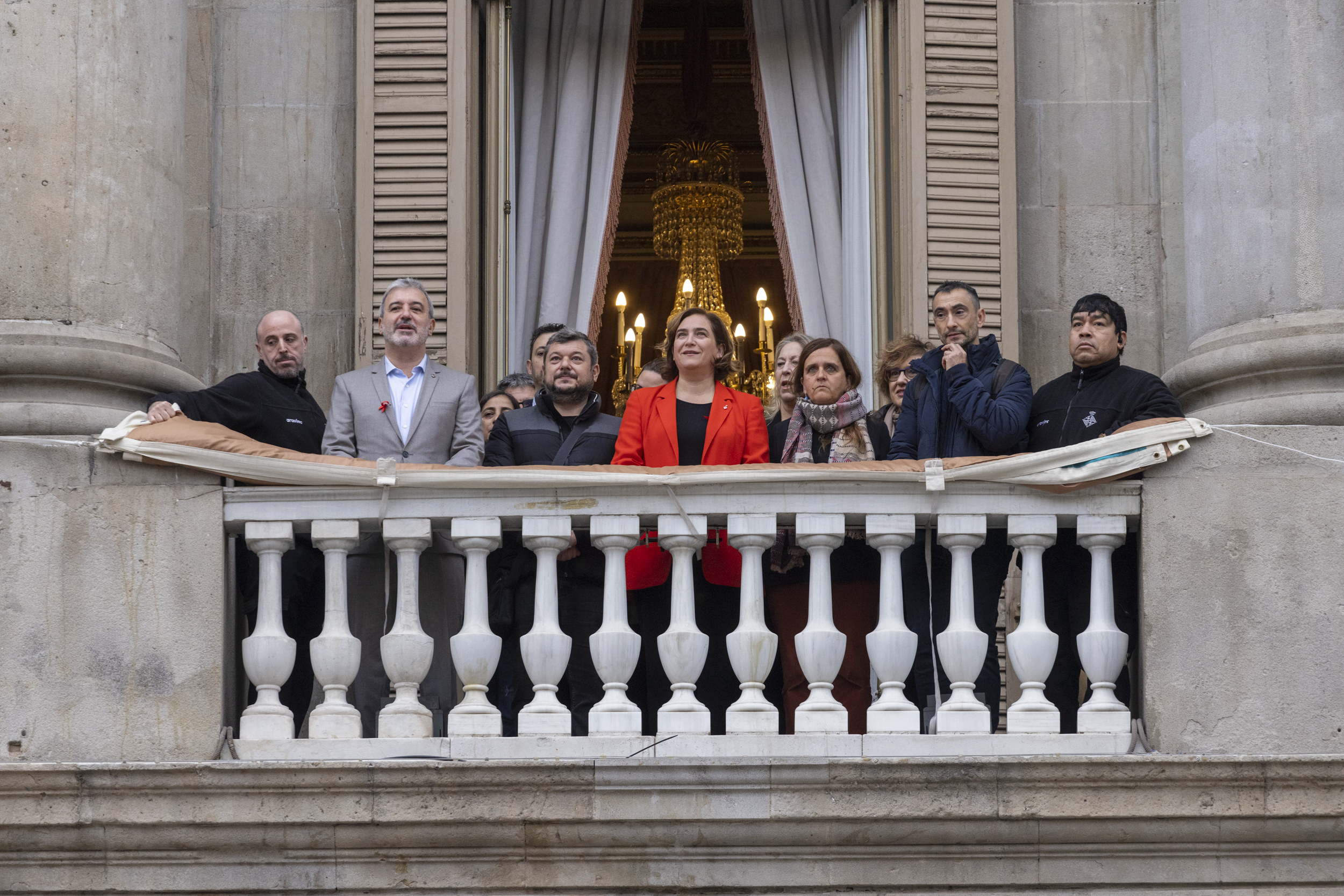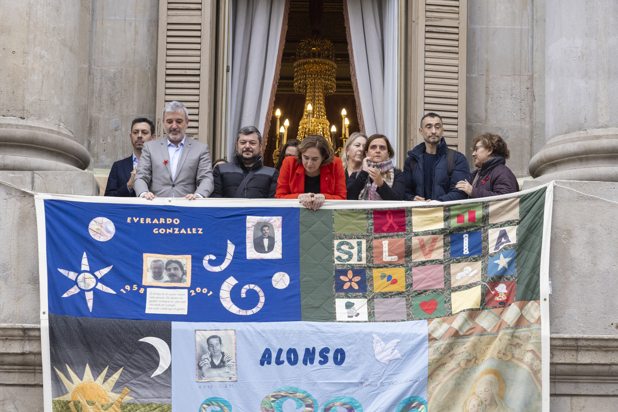 Ada Colau participa en el desplegament del Tapís Memorial de la Sida des del balcó de l’Ajuntament