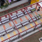 En concret, a fàbrica s’han aprofitat mecanismes de producció industrial com cadenes de muntatge per tal de dur a terme una producció àgil i eficient, realitzant tota la feina possible amb els contenidors, fins als primers acabats. El tractament dels contenidors ha consistit a fer obertures i reforços, la col·locació d’envans, les instal·lacions sanitàries i de subministraments, fins a elements terminals com sanitaris, reixes, endolls o interruptors, la col·locació dels tancaments d’alumini a la façana, i una primera mà de pintura. Al llarg d’aquestes 26 setmanes, un cop acabats els treballs a fàbrica amb els 77 contenidors, s’ha procedit al seu trasllat a l’obra, on prèviament s’havien començat a aixecar les estructures pertinents.