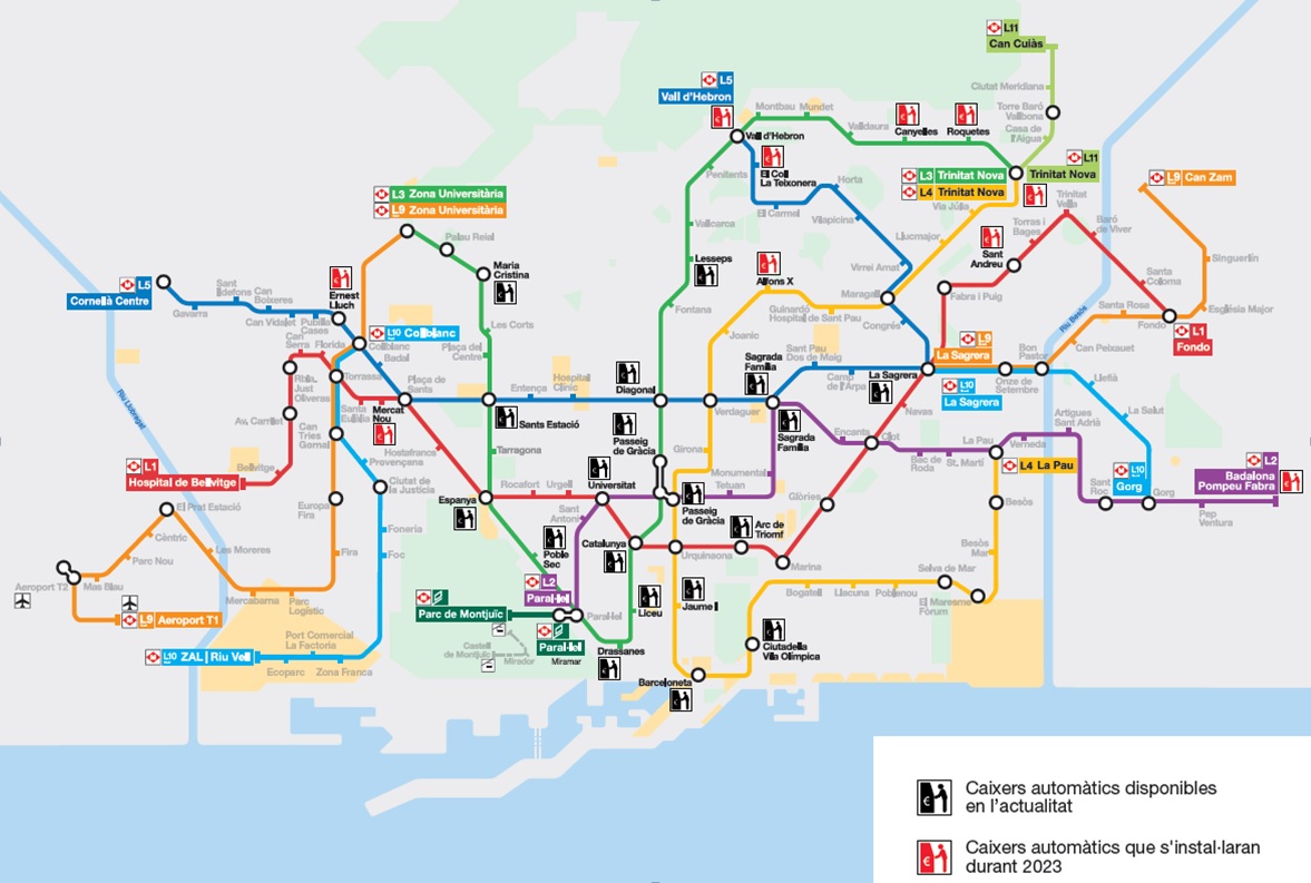 Durant el primer semestre de 2023 es col·locaran 11 nous caixers automàtics a estacions de la xarxa de metro, que se sumen als 21 ja instal·lats al juliol