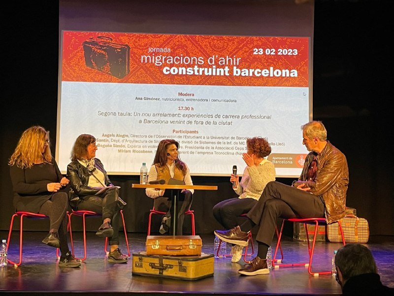 A la segona, ‘Un nou arrelament: experiències de carrera professional a Barcelona venint de fora de la ciutat’, han intervingut persones nascudes fora de Barcelona que han desenvolupat la seva vida professional a la ciutat.