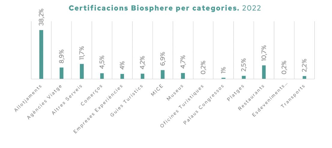 Comparativament destaca el fet que les empreses i entitats que més creixen el 2022 a nivell de certificació Biosphere a la ciutat de Barcelona són la restauració, passant de 21 a 43 restaurants, i els espais museístics, on de 14 museus al 2021 s’ha anat a 19 amb la incorporació de punts com el Museu Picasso i el Disseny Hub Barcelona. No obstant això, per volum de negoci, el sector comerç és el que representa una menor afiliació a la certificació.