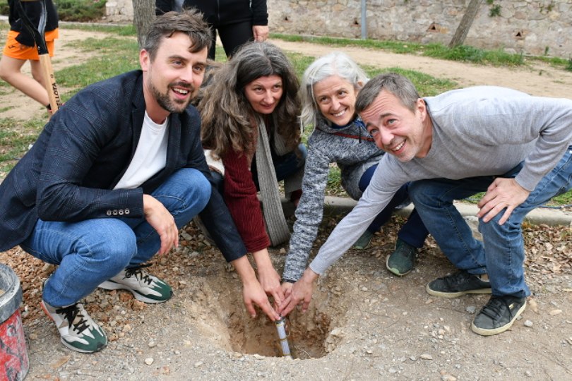 Ahir, per celebrar l’arrencada dels projectes es va fer a l’esplanada dels jardins un berenar popular i un acte simbòlic de col·locació d’una capsa del temps a l’indret on hi haurà l’Aula. L’acte va comptar amb Marc Serra, regidor del districte, les entitats promotores de les iniciatives i el veïnat i escoles de l’entorn com ara membres de Som la Clau,CooperaSec, el Pla Comunitari, les AFAs de les escoles El Bosc i Tres Pins, l’Associació Hort Font Trobada, i el Consell Emergència Climàtica .