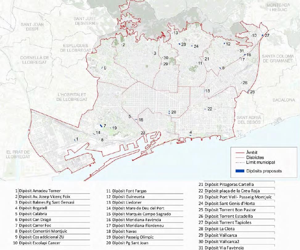El pla preveu la reserva d’espais en subsòl per a la ubicació futura de 31 dipòsits que han de permetre millorar el drenatge de la ciutat i per fer front als reptes que planteja l’actual situació d’emergència climàtica