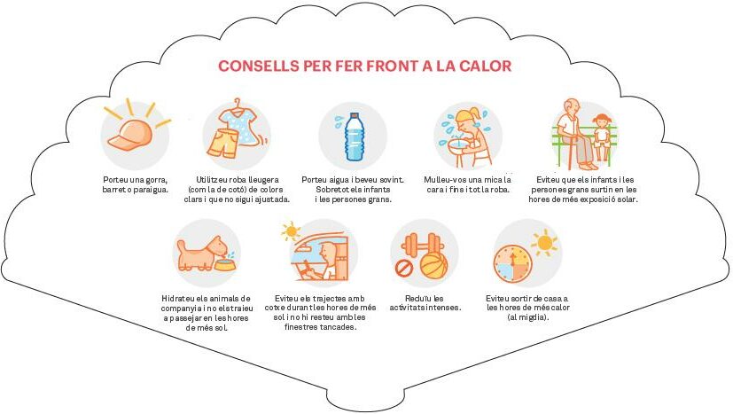 Entre les mesures destacades hi ha l’avançament de l’horari dels serveis per reduir l’exposició a la calor durant les hores centrals del dia i adaptació de la jornada laboral els mesos d’estiu per reduir el nombre d’hores d’exposició. Aquestes modificacions es fan amb la planificació necessària per no afectar el servei. També s’ha iniciat una revisió del vestuari, per introduir peces que protegeixin i alhora siguin fresques, gorres amb un tractament especial per combatre les altes temperatures i s’han posat aires condicionats portàtils en aquells casos de centres de treball sense refrigeració.