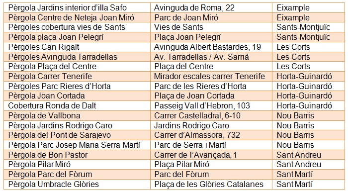 Les pèrgoles generadores d’energia amb espai d’estada són les següents: