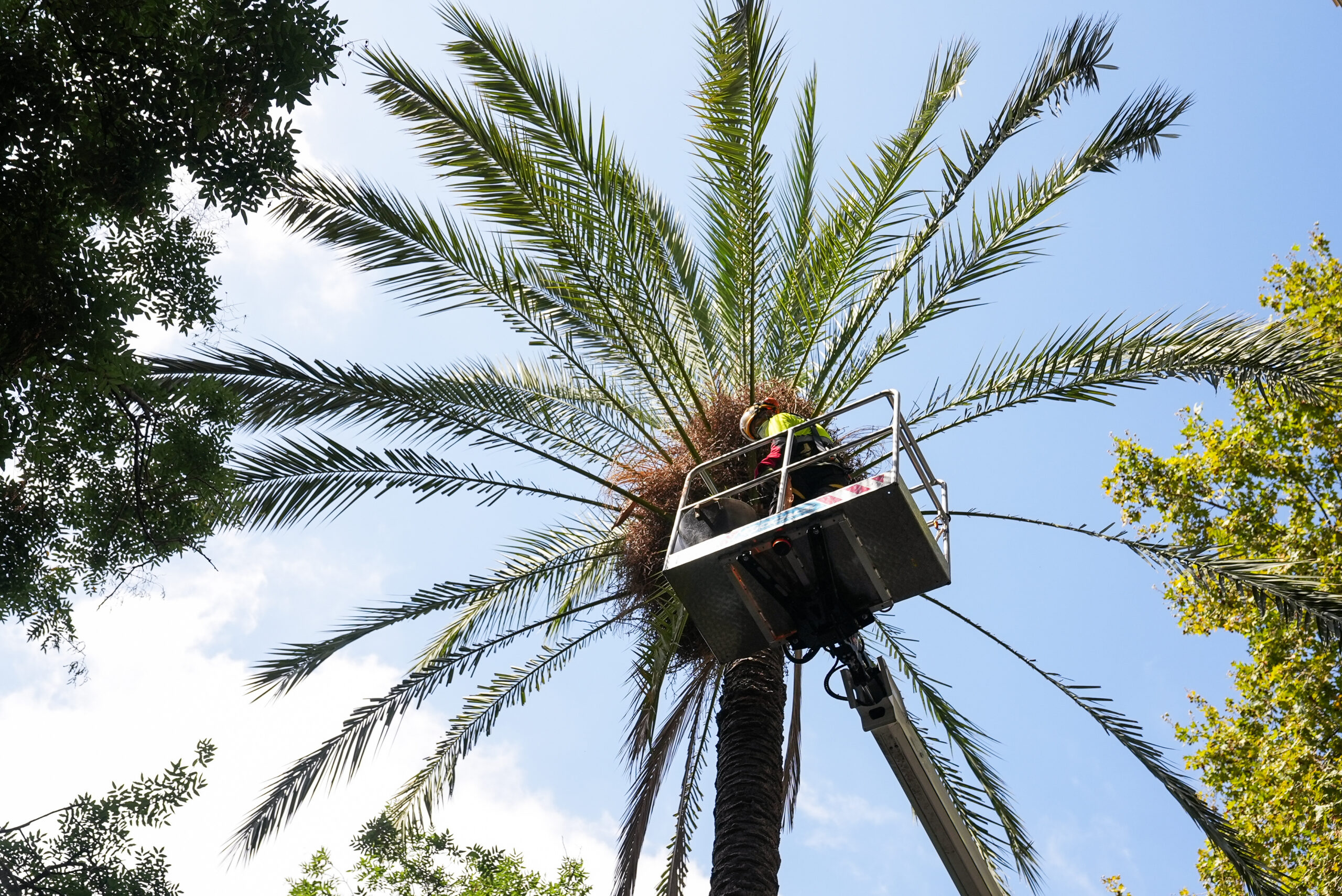 La revisió preventiva s’està fent justament en palmeres que reuneixen aquestes tres condicions, amb l’objectiu de minimitzar qualsevol risc i procedir a la seva tala, en cas que es consideri necessari. Davant del mínim dubte que existeixi en aquesta revisió, els tècnics determinaran la tala de la palmera. Fins a la data, ja s’han revisat unes 100 palmeres datileres de les 900 previstes. D’aquest centenar de palmeres revisades fins avui, se n’han talat un total de 8, a partir dels llindars més de restrictius que ha determinat Parcs i Jardins. En paral·lel, també s’ha iniciat un procés de reforç del reg de palmeres datileres, precisament per reduir l’estrès hídric, que és un dels factors que també s’analitzen.