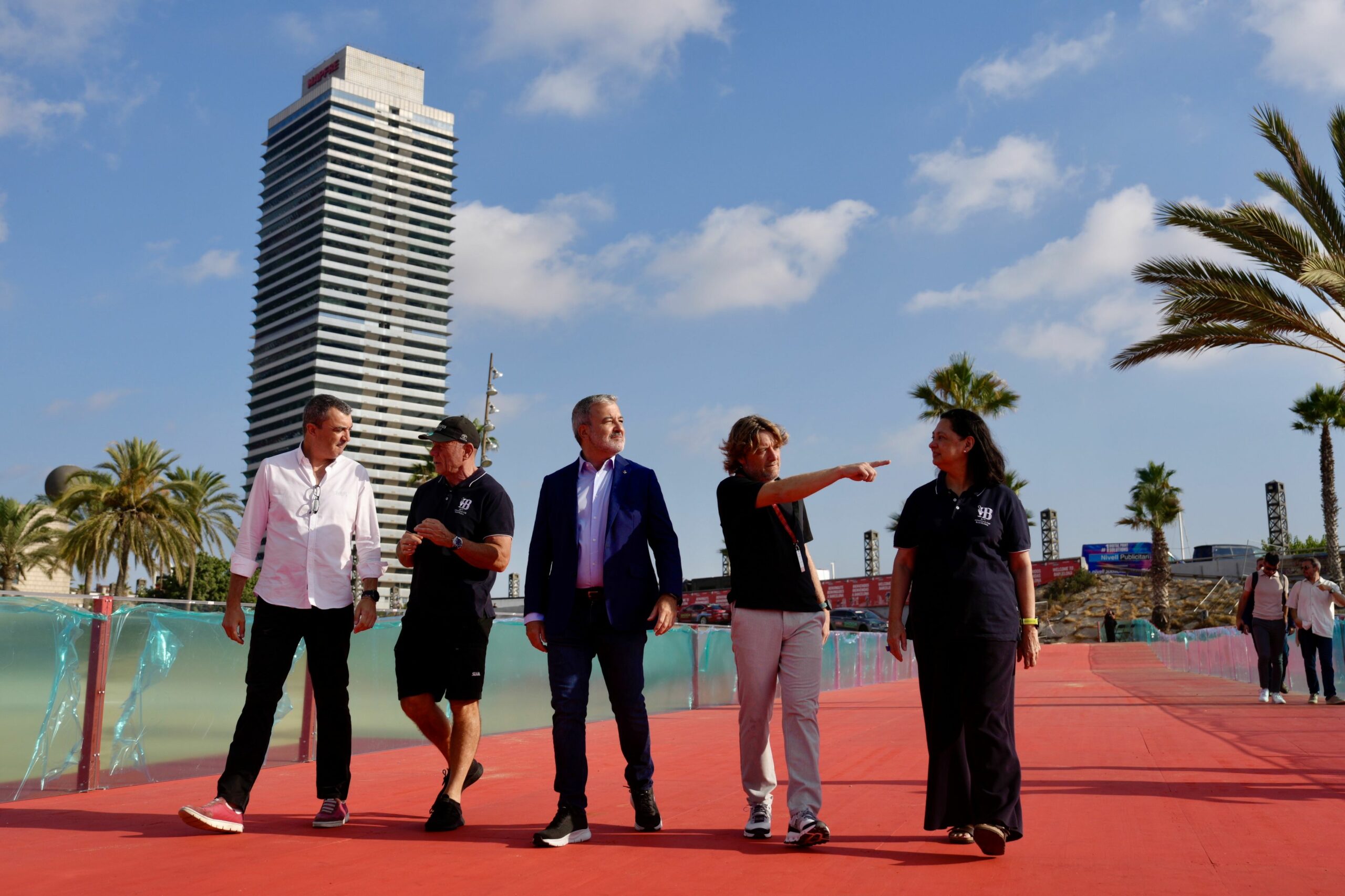 L’alcalde de Barcelona, Jaume Collboni, ha presidit avui l’acte d’agermanament entre els dos grans esdeveniments esportius que acollirà la ciutat properament: La Vuelta, que comença demà, i la Copa Amèrica, que tindrà lloc l’any que ve. A banda de l’alcalde, han protagonitzat aquest acte simbòlic, que s’ha desenvolupat a la platja del Somorrostro a on demà tindrà lloc la sortida de la primera etapa de La Vuelta, el director general de La Vuelta 2023, Javier Guillén, i el CEO de la Copa Amèrica, Grant Dalton. Els ha acompanyat el regidor d’Esports, David Escudé.