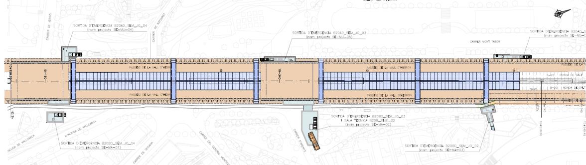 - Els treballs inclouen la construcció d’un mur central de recolzament de l’estructura, la pròpia cobertura, passos de serveis i sis sortides d’emergència de túnel amb una sala tècnica integrada en una d’elles