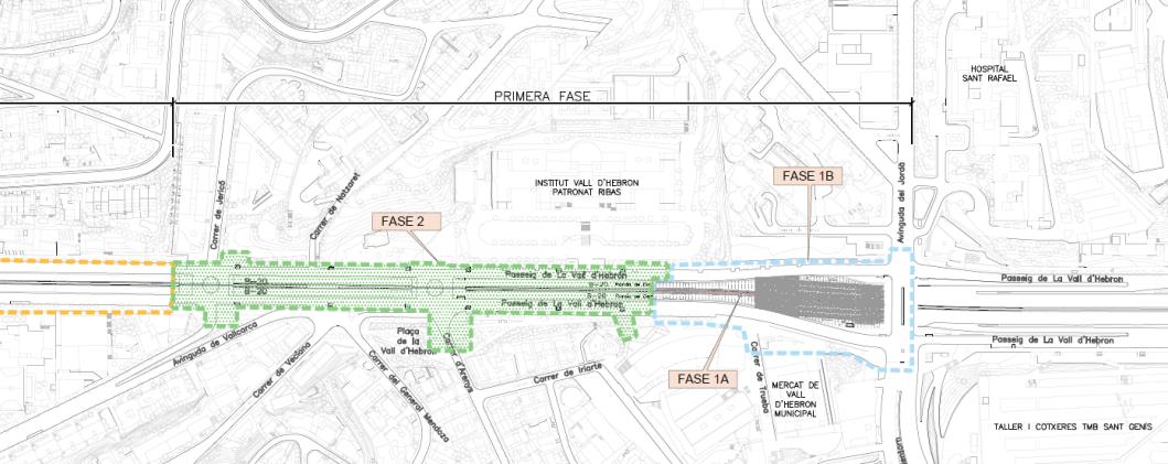A més de la segona fase entre IES Vall d’Hebron i l’avinguda de Vallcarca que ara inicia la tramitació, també es treballaran en el marc de la comissió les fases següents, que suposaran una nova superfície guanyada per a equipaments i més espai verd.