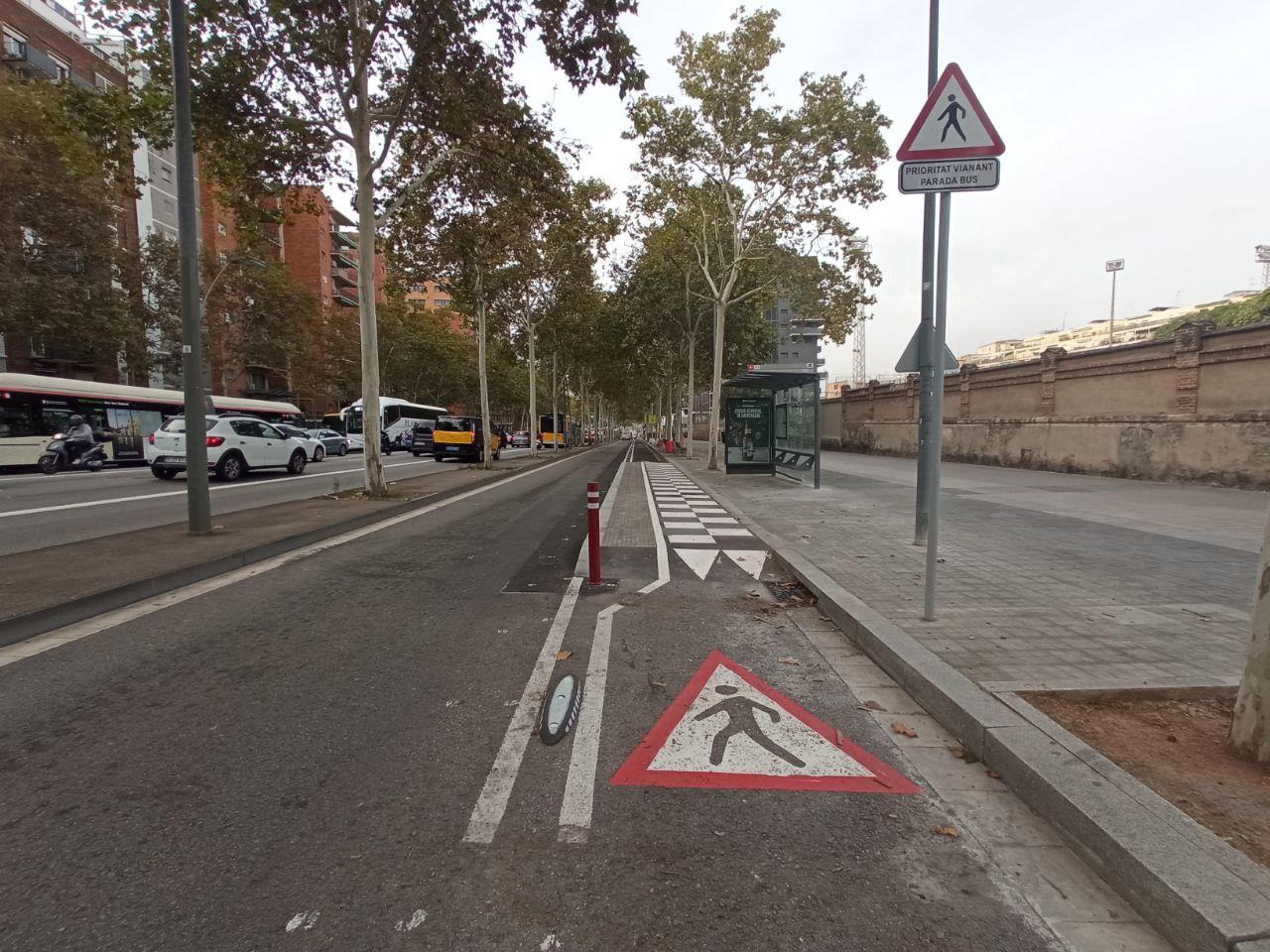 Entra en servei el carril bici de la Gran Via de les Corts Catalanes, entre el carrer de Mir Geribert i el carrer de Mossèn Amadeu Oller
