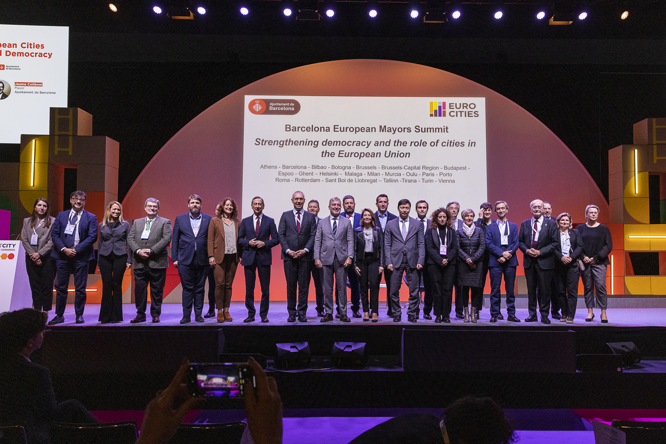 La Cimera s’ha tancat amb el suport conjunt a la Declaració Ciutats Europees per a l’elaboració de polítiques europees i la democràcia que s’adreça al Consell Europeu i als estats membres de la Unió Europea. El text, que s’ha presentat en el marc de l’Smart City World Congress 2023, a la Fira de Barcelona, recull el paper fonamental de les ciutats per abordar eficaçment els grans reptes globals. La declaració incideix en la necessitat d’augmentar la visibilitat, el reconeixement i la participació activa de les autoritats locals en els processos europeus de presa de decisions, garantint que les ciutats exerceixin un paper crucial en la configuració i aplicació de les polítiques europees.