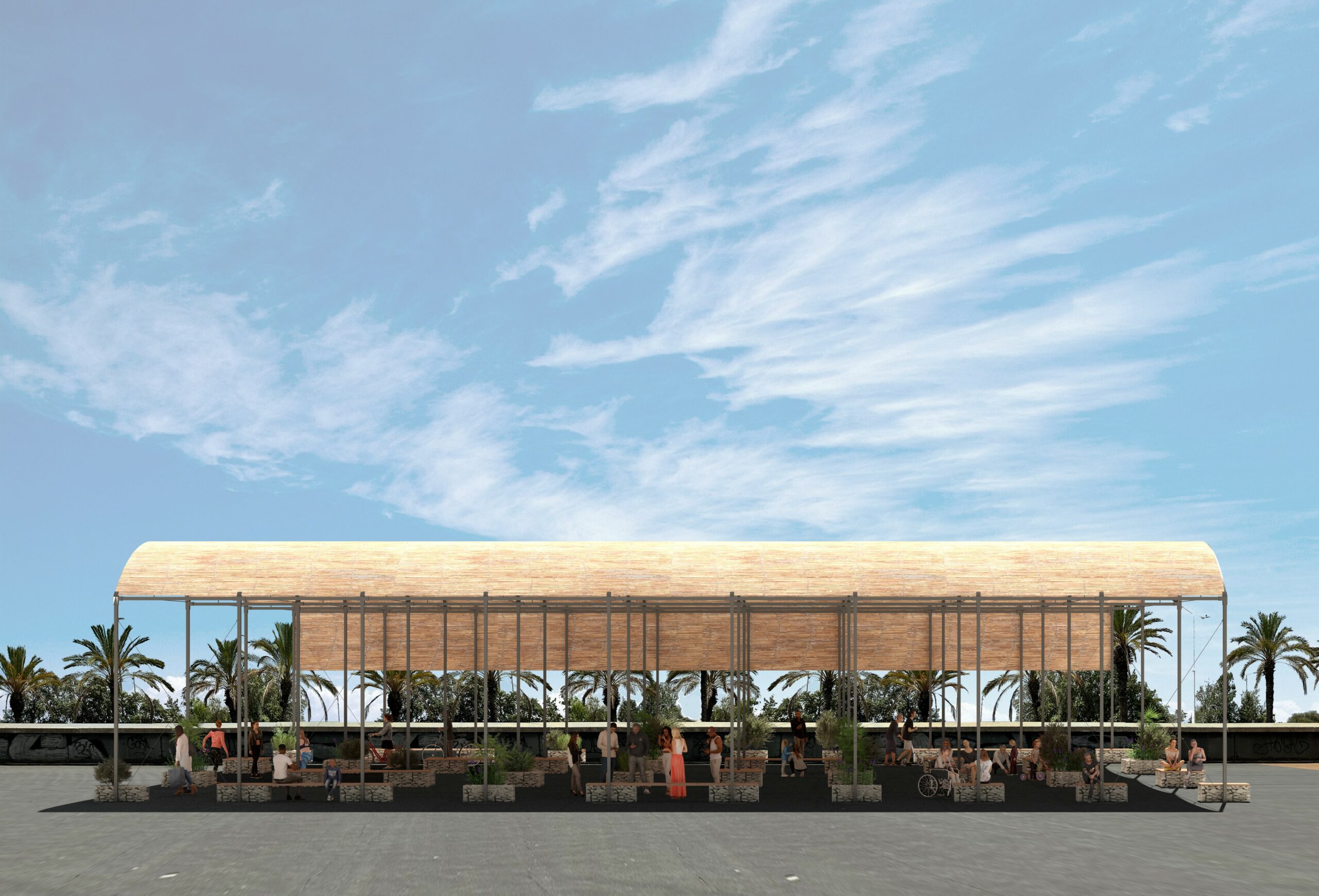 La primera proposta s’anomena “Oasis. Ombra per a tothom”, presentada per l’equip format per Denvelops i Eurecat. “Oasis” és un sistema industrialitzat de revestiments calats, basat en peces de petit format que es mouen amb el vent i que es poden combinar en diferents densitats i patrons segons les necessitats de cada espai. Aquest teixits híbrids són 100% reciclables i recuperables, només amb tres components. Dos d’ells (cables i connectors) són d’acer inoxidable, perfectes per garantir la durabilitat i resistència del sistema. El tercer component està format per les plaquetes d’ombratge, que 3 poden ser de molts materials i geometries diferents, fusta, acer, HPL, teles, etc.