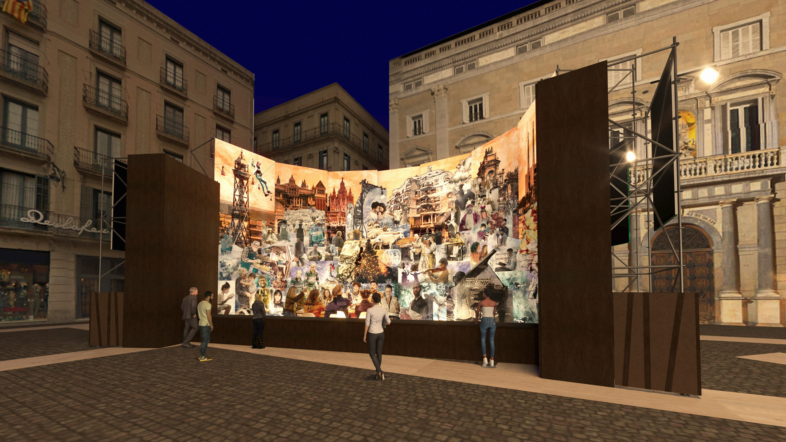 - El pessebre de la plaça Sant Jaume per al Nadal 2023 està creat per l’escenògraf Ignasi Cristià i reinterpretan en clau barcelonina contemporània la tradició del pessebre napolità
