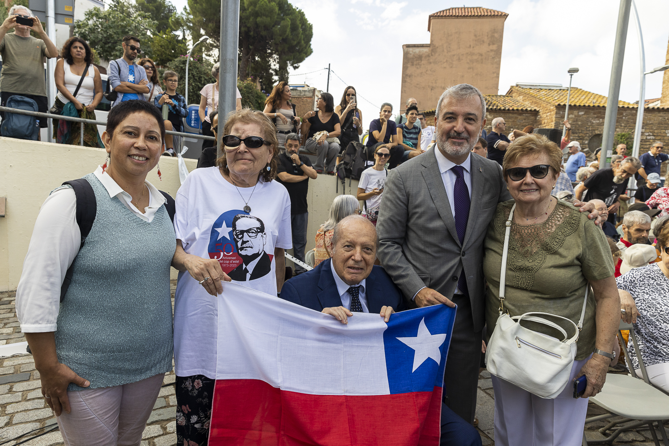 L’alcalde de Barcelona, Jaume Collboni, ha assistit a l’acte d’homenatge a Salvador Allende. A l’acte també hi ha assistit el regidor del districte d’Horta-Guinardó, Lluís Rabell, i altres membres de l’equip de govern.