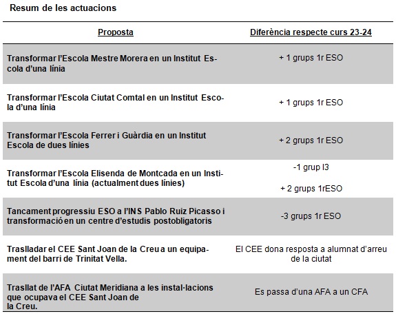 - Les escoles de Torre Baró, Vallbona i Ciutat Meridiana esdevindran instituts escola i l’Institut Pablo Ruiz Picasso passarà a ser un centre d’estudis postobligatoris.