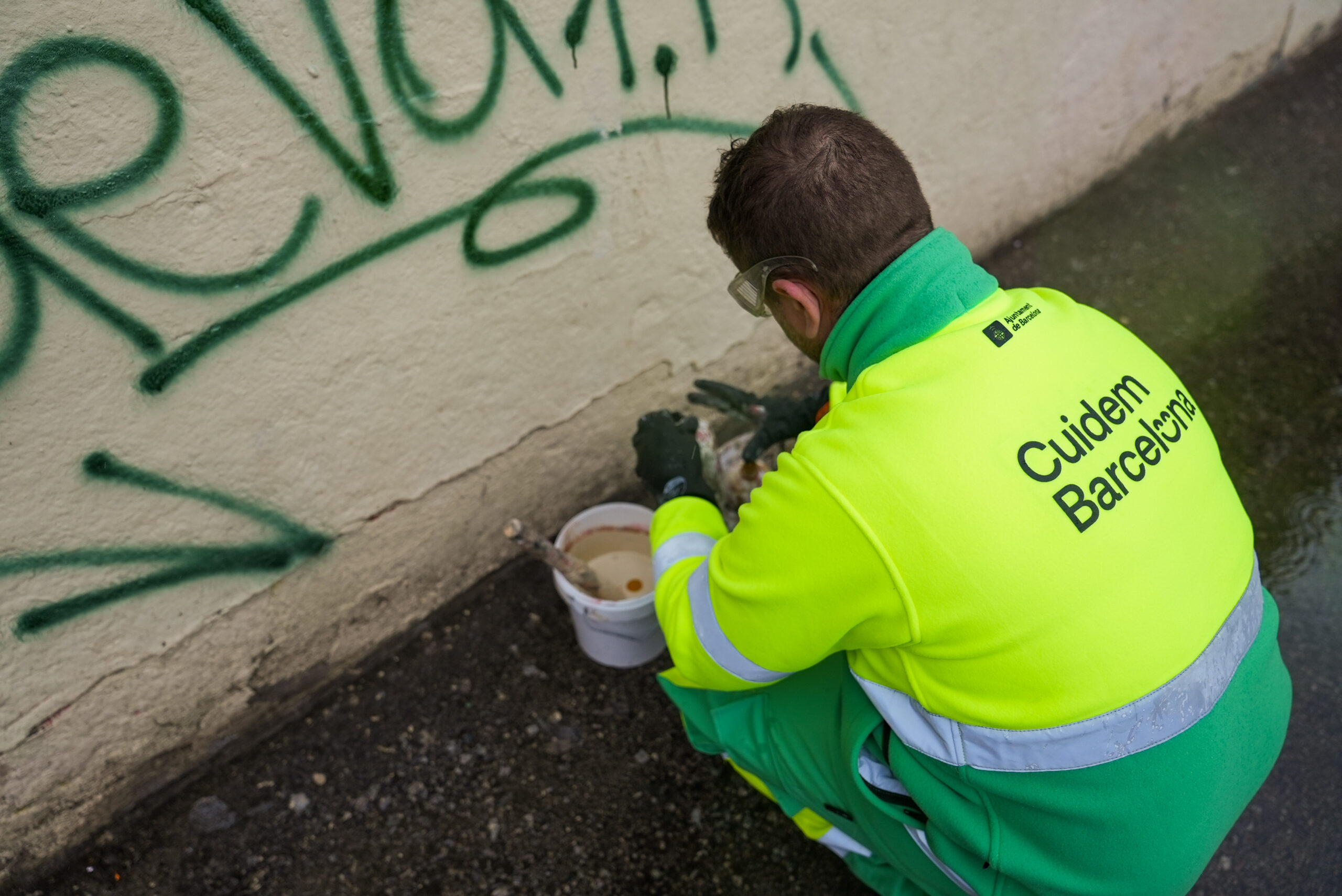 L’Ajuntament de Barcelona ha posat en marxa el nou contracte de neteja de pintades i taques de pintura, eliminació de cartells i retirada de pancartes i altres elements de la via pública amb un import total de 16 milions d’euros per als anys 2024 i 2025, un 17% més que el darrer. El nou contracte, que engega sota el paraigua del Pla Endreça Barcelona, permet un increment de més del 30% del nombre d’efectius dedicats a la retirada de pintades, arribant fins als 36 equips.