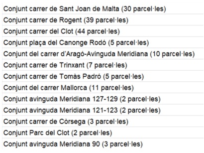 - C/Clot (entre av/Meridiana i c/Navas de Tolosa). Es considera que es tracta d’unes afectacions per realineació viaria molt menors en un teixit tradicional d’interès i que la desafectació d’aquestes edificacions no repercuteixen en cap cas en la configuració de la secció del carrer, que té una naturalesa cívica de connexió entre la plaça de les Glòries i La Sagrera.