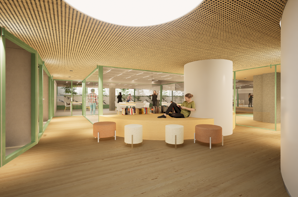 La zona més interna, acollirà l’espai de treball del personal del centre i disposarà de despatxos, sales de reunions i un office.