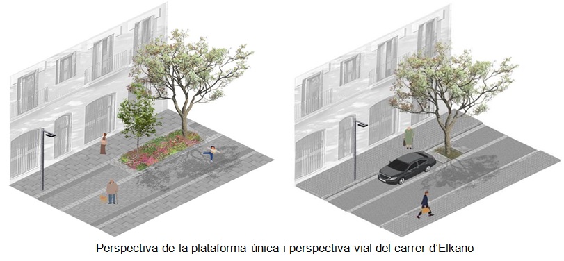 Així, el carrer d’Elkano es dividirà en dos trams: entre el carrer Radas fins al carrer Margarit la reurbanització es farà amb plataforma segregada i entre carrer Radas i el carrer Jaume Fabra amb plataforma única.