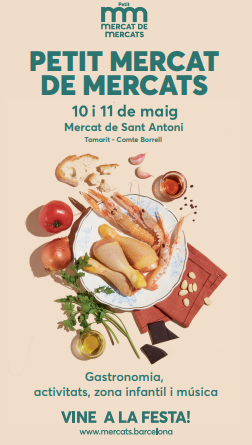 Els dies 10 i 11 de maig se celebrarà la segona edició de Petit Mercat de Mercats, que aquest any tindrà lloc al Mercat de Sant Antoni. La Fira, que s’ubicarà a l’exterior del Mercat de Sant Antoni (a les places dels carrers Tamarit i Comte Borrell), tindrà lloc el divendres i dissabte de les 11 hores a les 22 hores. Durant els dos dies, s’organitzaran tot un seguit de tallers, showcookings, animacions i activitats infantils i musicals per a tota la família.