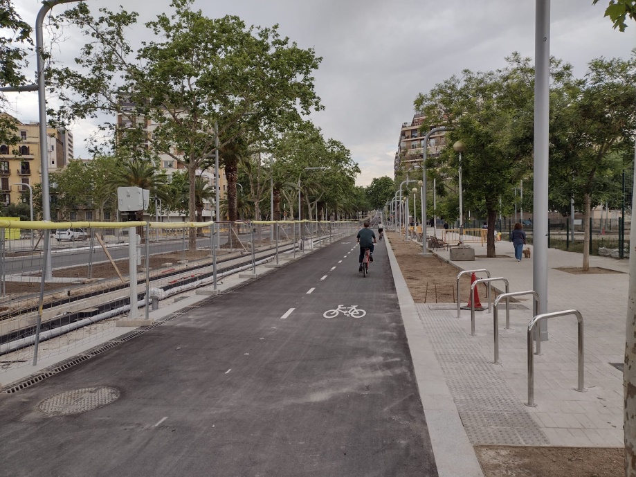Al llarg de les diferents fases d’obres de connexió de la xarxa tramviària s’ha dut a terme la reubicació per trams del carril bici inicial a la seva posició definitiva. Cada tram s’ha anat posant en servei a mesura que avançaven les obres. L’últim tram que restava per implantar estava situat entre la Rambla dels Encants i el carrer de Lepant i s’ha finalitzat aquest cap de setmana, completant així tot l’itinerari previst.