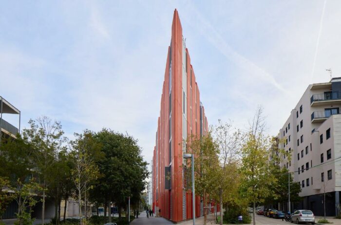 - El projecte arquitectònic, a càrrec de Coll-Leclerc + Mias Architect, presenta un disseny característic, amb una planta triangular d’angle molt agut i una façana de color vermell