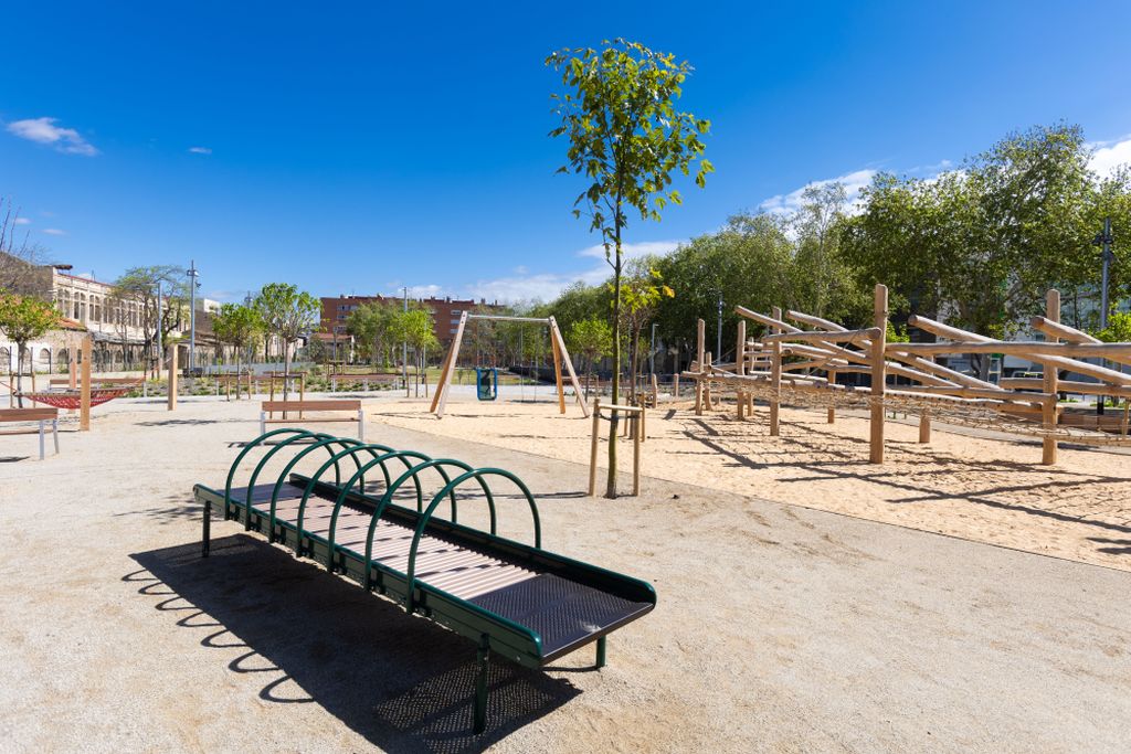 - Té una placeta central, dos prats i dos jardins i una gran àrea de joc singular accessible de prop de 1.000 m2